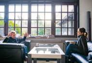 Die ruhige Straße in der Wedemark führt vorbei an großen Kiefern zu einem mit Efeu bewachsenen Haus mit hölzernen Fensterläden und Reetdach. Ein dreieckiges Schild am Straßenrand weist darauf hin, dass hier regelmäßig Eichhörnchen über die Schotterstraße flitzen. Der erfolgreichste Cartoonist Deutschlands öffnet mir die Tür. Er trägt einen schwarzen Hoodie und hellblaue Jeans. Wir duzen uns. Die weißen Wände sind von dunklen Holzbalken und -türen durchzogen. Von Uli Stein fotografierte Hunde blicken mir von großen Wandbildern interessiert entgegen. Wir setzen uns auf zwei Ledersofa, die sich im Wohnzimmer gegenüberstehen. Über gestapelte Magazine blicken wir durch die Fensterfront in den Garten, wo auf einem Tisch Walnüsse für die Eichhörnchen warten und eine Kamera aufgestellt ist, die nachts die Krähe einfangen soll. Uli Stein holt uns Kaffee in Tassen mit Reh- und Igelmotiven. Er lässt eine filterlose Zigarette durch die Hände gleiten, während wir sprechen.