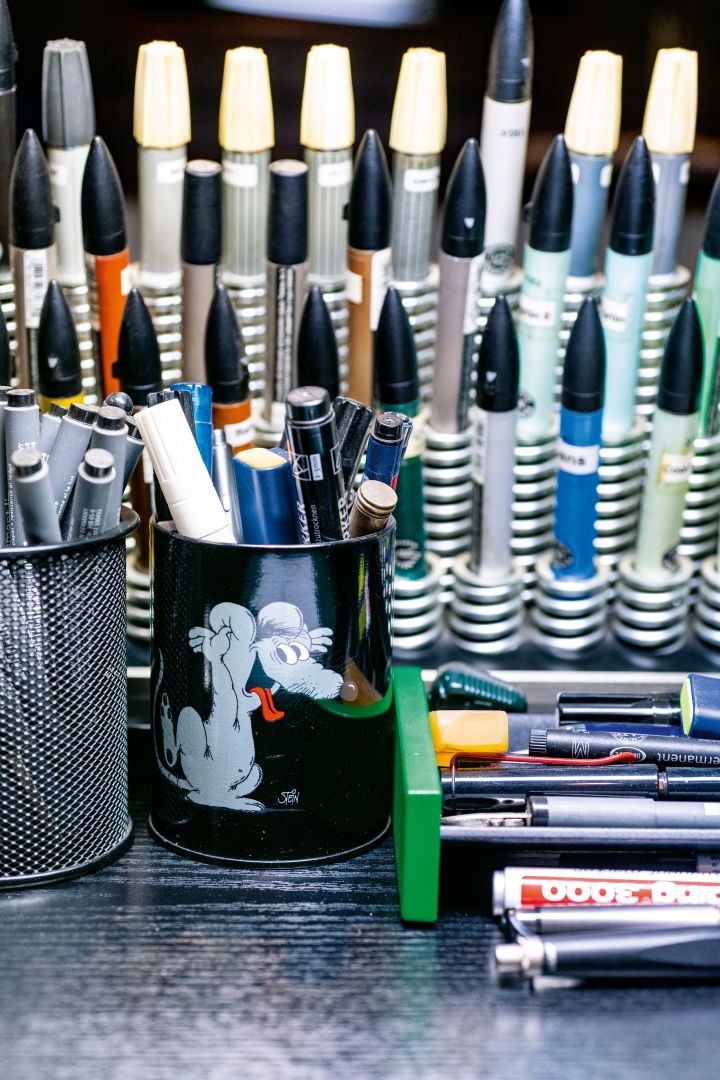 Nee, so schlimm ist es nicht. Genervt hat es mich nie. Auch früher, wenn der Verlag abends angerufen hat und meinte: „Wir brauchen ganz dringend einen Cartoon. Können wir den bis morgen kriegen?" Klar. Damals gab es ja keine E-Mails. Da mussten wir alles auf Papier zeichnen, in einen Umschlag tun, abends zur Hauptpost fahren und es per Eilboten in den Briefkasten einwerfen. Das hat mich aber nie gestört.