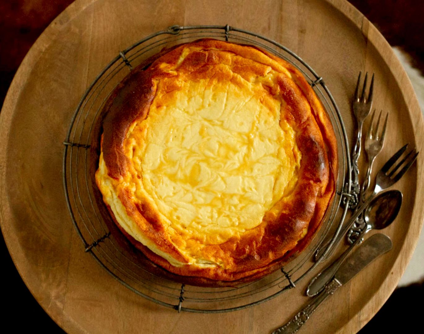 4. Quarkmasse in die Form geben. 100 ml Eierlikör darüberträufeln und mit einem Holzspieß ein Muster durch den Eierlikör und die Quarkmasse ziehen. Kuchen mind. 60 Min. backen, bis die Ränder schön hochgegangen sind und sich goldbraun gefärbt haben. Im ausgeschalteten Ofen bei leicht geöffneter Tür auskühlen lassen.