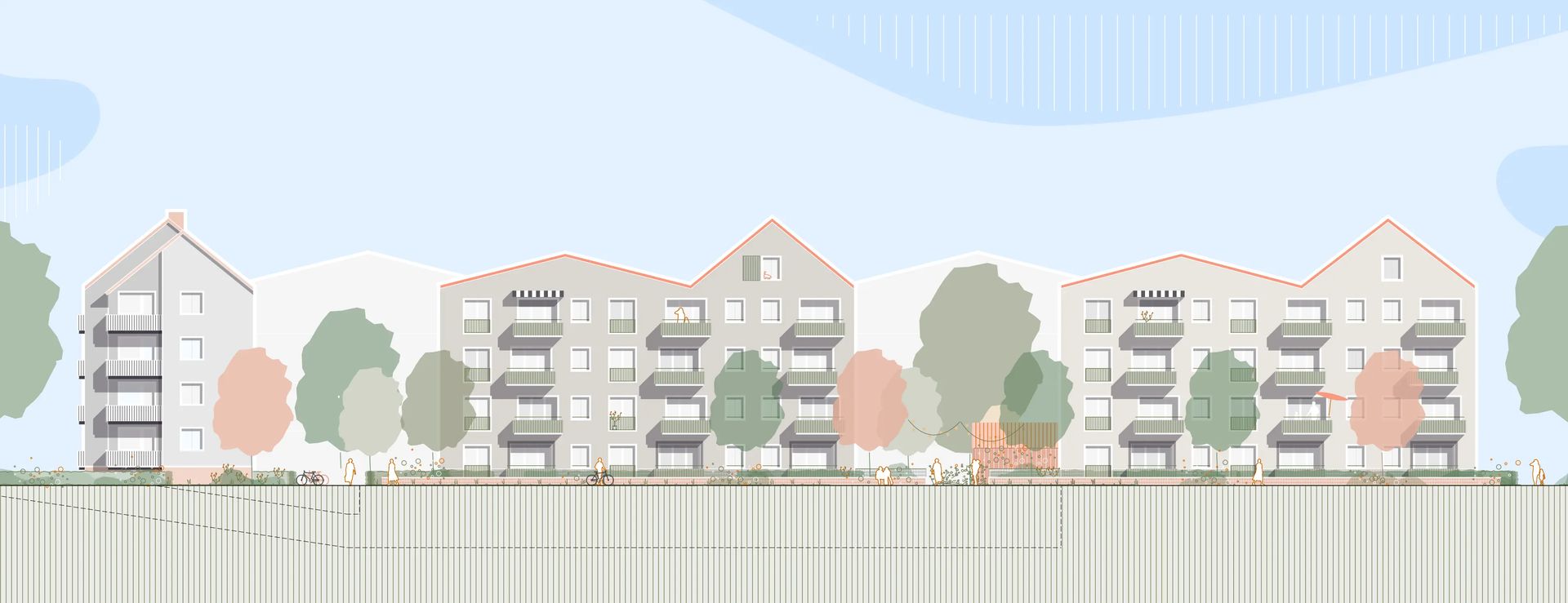 Ein architektonisch-gestalterischer Aspekt lag mir bei der Wettbewerbsentscheidung übrigens besonders am Herzen: Der Siegerentwurf geht im Gegensatz zum Zweitplatzierten architektonisch stark auf die vorhandenen Bauten ein, variiert die Architektur und setzt damit auch neue Akzente. In diesem Miteinander von Alt und Neu sehe ich die große Chance zu einer ganzheitlichen Gestalts- und Milieuverbesserung, da auch alle Bestandsgebäude im Zuge der energetischen Sanierung ein neues „Äußeres“ erhalten. Mit einer durchgängigen Gestaltidee kann eben viel Gutes entstehen, ohne mehr zu kosten.